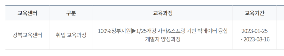 간단하게 홈페이지 상단 바에서 취업과정 > 강북교육센터 로 들어와 쭉 과정을 보며 훈련기간과 시작일자를 보며 일정에 맞는 강의를 통해 신청했다.