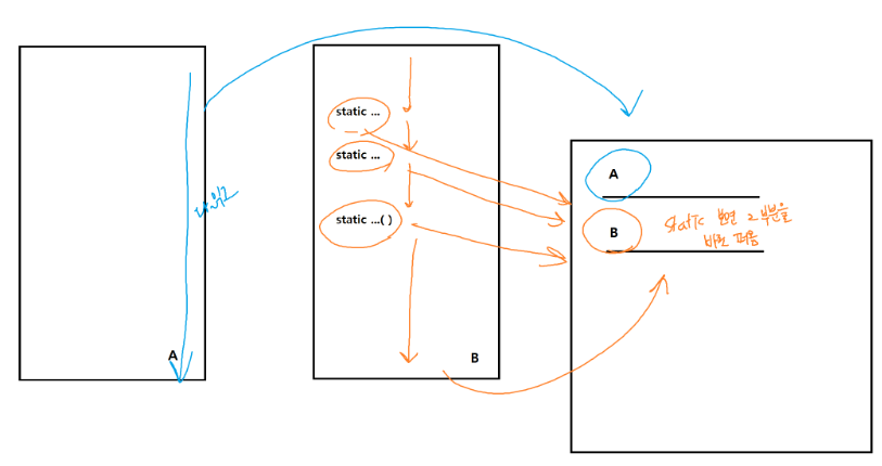 ※ static 에서 가장 중요한 개념 1) 탄생시점 - 클래스 변수 또는 클래스 메소드는 클래스 정보가 로딩되는 순간 메모리 할당이 이루어지며 클래스 이름 또는 객체(인스턴스)를 통해 접근할 수 있다. 즉,『new』연산자를 통해 메모리를 할당받지 않아도 사용이 가능하다. 2) 공유 - static 변수의 경우 클래스 내의 "공유 객체" 이다. (공용으로 사용되기 때문에, 해당 객체를 호출하여 사용/변경 하게 되면 그 값이 남아있게 된다)